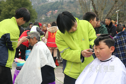 活动中,来自保靖县职中美发与形象设计专业10名志愿者,在专业组教师组织下,利用专业优势,为闻讯而来的市民义务理发,解决“头等大事”。一把剪刀、一把剃刀、一把梳子、一块围布……不一会儿,小朋友原本有些凌乱的头发变得整齐利落。“谢谢志愿者!”“大哥哥的手艺不错嘛!”志愿者用细致的态度和娴熟的手艺获得了一致认可。